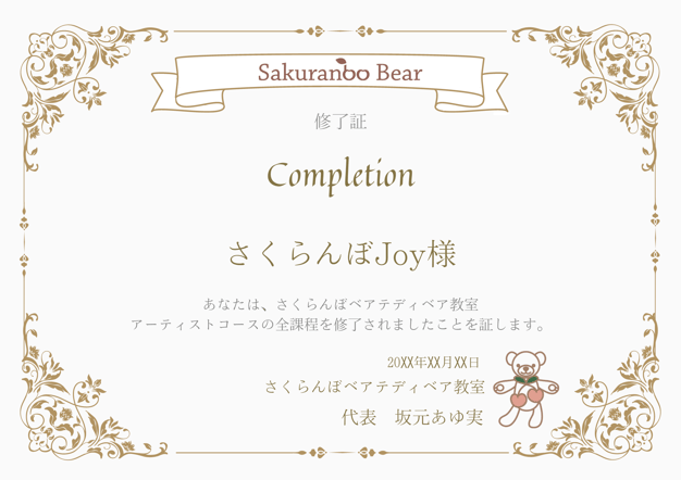 そこで、さくらんぼベアテディベア教室のアーティストコースは、